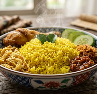 Nasi kuning memang jadi favorit banyak keluarga. Rasanya gurih, warnanya cantik, dan cocok banget buat acara spesial atau sekadar makan enak di rumah.
