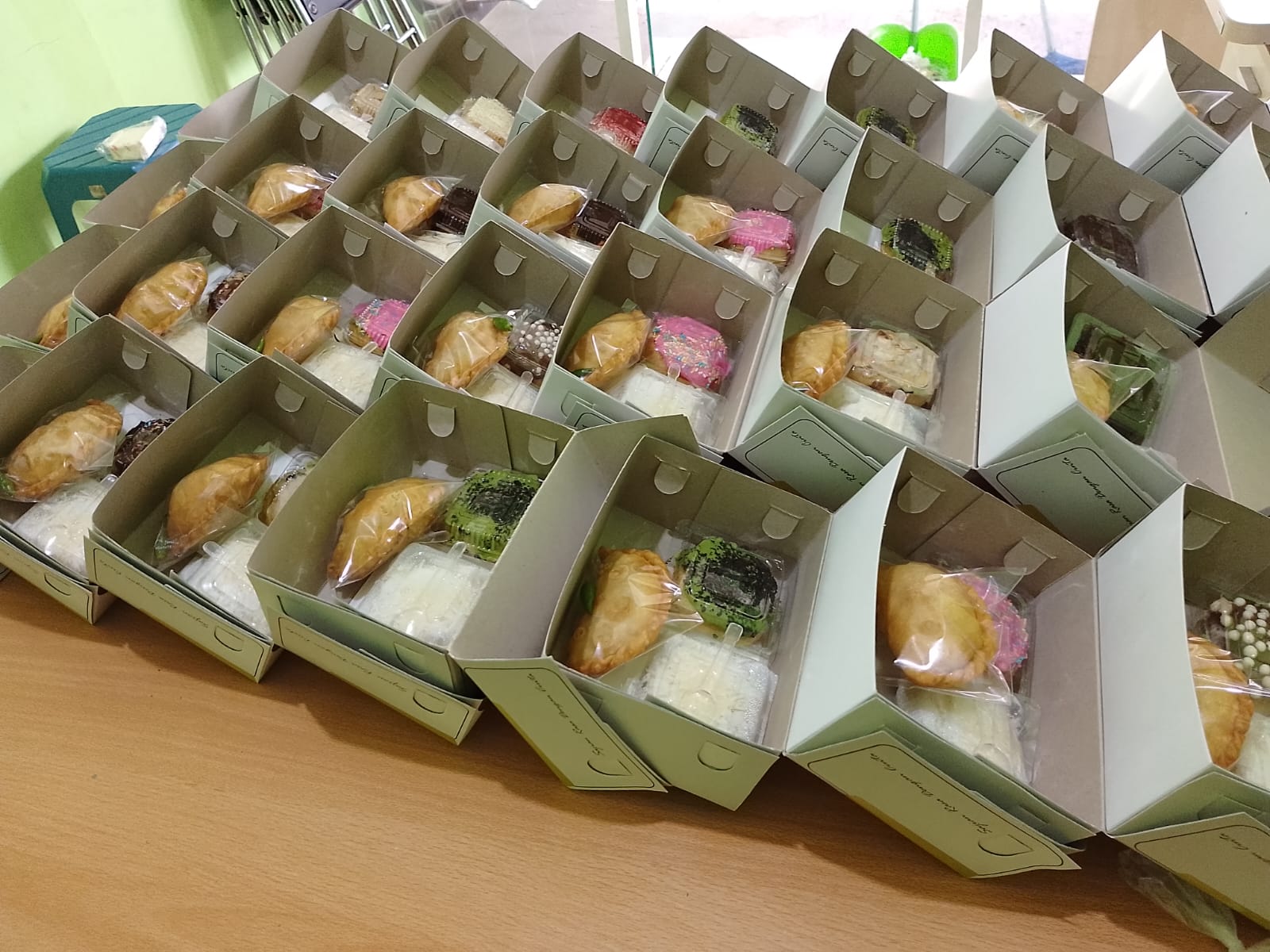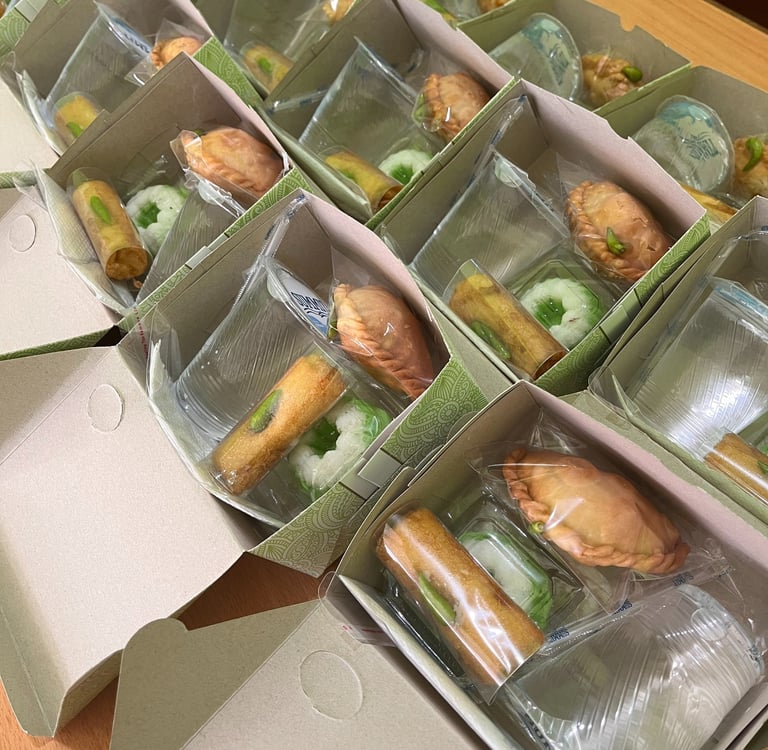 Untuk Acara kumpul kumpul (Snack Box): Snack Box kami dirancang praktis, higienis, dan ekonomis. Cocok untuk coffee break rapat, seminar, atau goodie bag acara kantor. Kamu bisa mix and match antara kue tradisional dan kue modern (pastry).