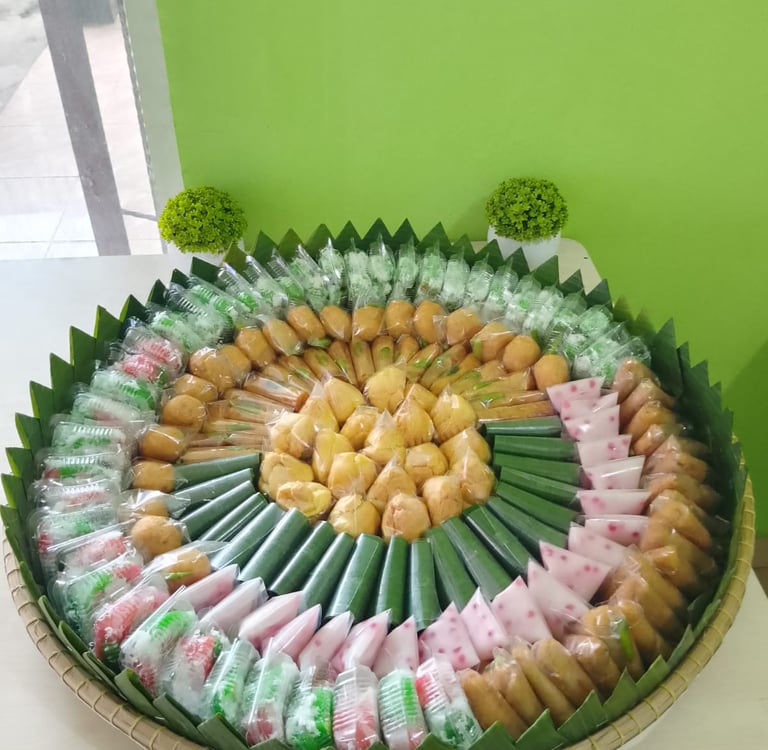 Untuk Jamuan Keluarga (Prasmanan): Kami menyediakan kue dalam tampah besar dengan penataan yang cantik, siap menjadi pelengkap Tumpeng atau Nasi Kebuli kamu.